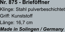 • Brieföffnerklingen